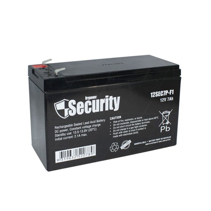 SECURITY by Drypower 12V 7Ah Sealed Lead Acid battery with F1 terminals for use in alarm systems