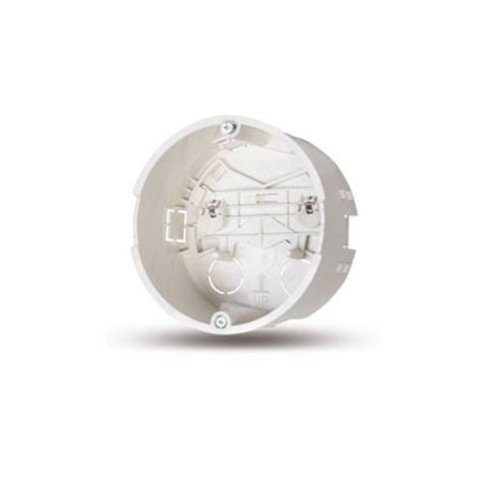 An installation box for 2N answering units, which enables you to gently rotate the unit in order to achieve a perfectly horizontal position after the answering unit is fitted. It requires a 103mm-wide and 50mm-deep round opening.