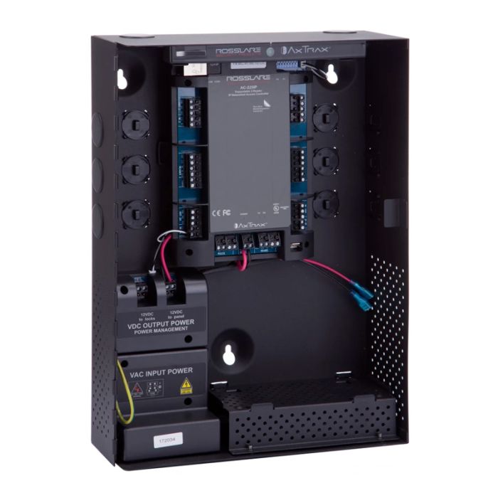 AC-225IP-B, and AC-225-B are professional grade access controllers that have advanced online and offline logic capabilities, using non-volatile memory in case of total power loss. The panels support 30,000 users, 128 access areas, 128 access groups, 128 time zones, 64 holidays, and 32 panel automation links. They feature 2 readers, 4 outputs, 4 inputs, buzzer indicator output, and LED indicators for TCP/IP, serial bus, output status. The panels feature a secondary RS-232 serial port enabling a PC connection via a standard serial COM port. The reader ports support industry standard Wiegand inputs from 26-Bit to 64- Bit and 8 different keypad formats. When connected to AxTraxNG™ Server software Microsoft ® Windows® 7/8/10 operating systems, IP networks of up to 1023 panels may be achieved with the AC225IP.