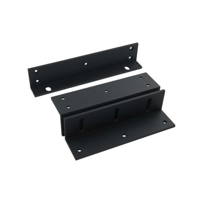 The FSH AMZB4300-BLK is an Black L&Z bracket to suit the single FEM4400-BLK series electromagnetic locks for above door mounting on inward swinging doors.