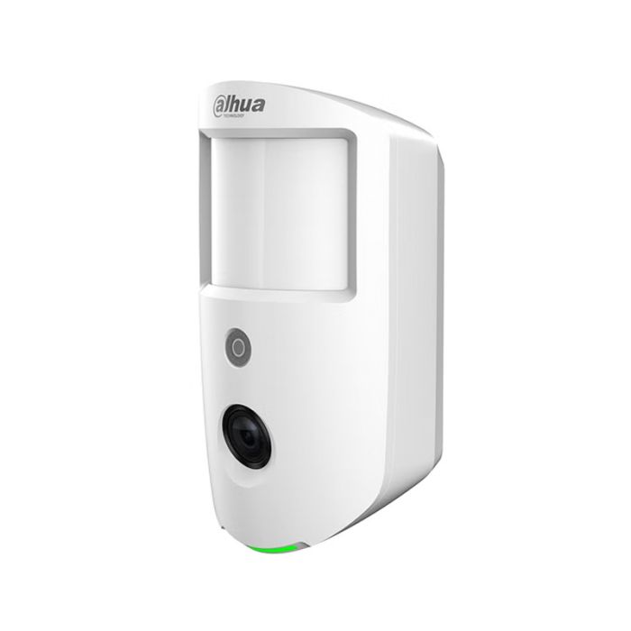 Dahua wireless PIR with camera white PET up to 18kg 12m detection area wall mounted 2.2m mount height 433mhz 3 x cr123a battery (9v) 127.6h x71w x 53.2d (mm)