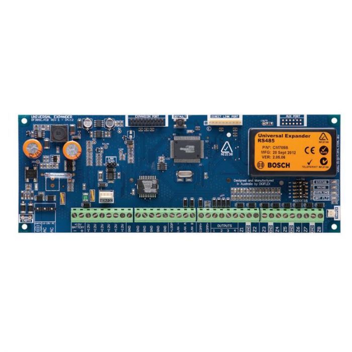 The CM705B Universal Expander provides a cost effective way to increase the control panel’s zone inputs, programmable outputs and power supply capacity using a single expander module. This module