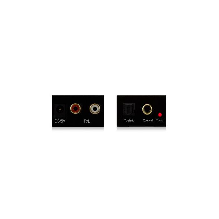 DAC (Digital to Analogue Audio Converter) converts either digital optical or coaxial to analogue stereo left/right audio output