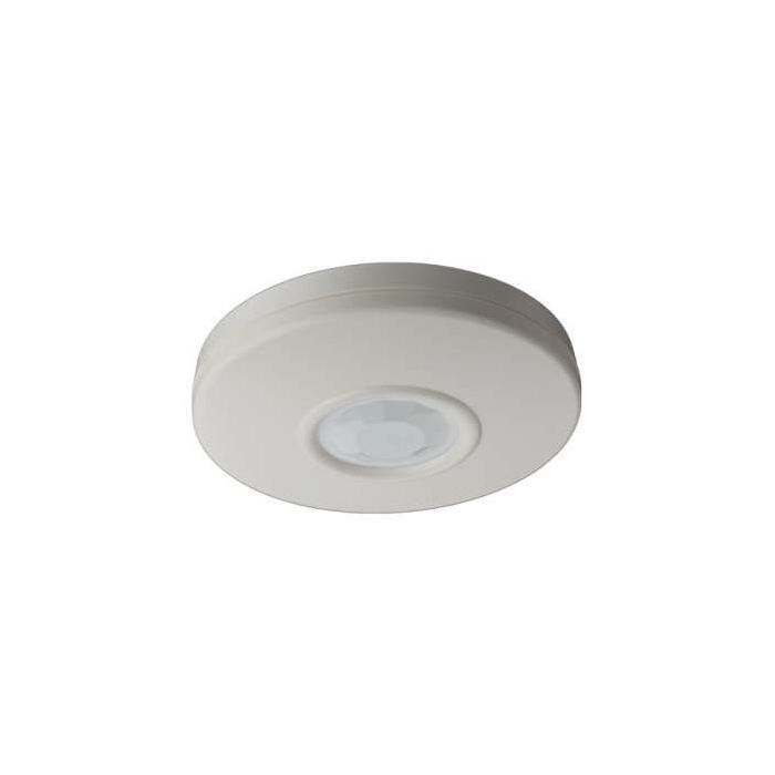 The ceiling mount, low profile panoramic DS936 PIR Detector uses alternate polarity pulse count. It also uses a pointable Fresnel lens to provide up to 7.5 m (24 ft) of coverage and can be mounted on the surface, or semi-flush directly to a ceiling or a standard octagonal electrical box