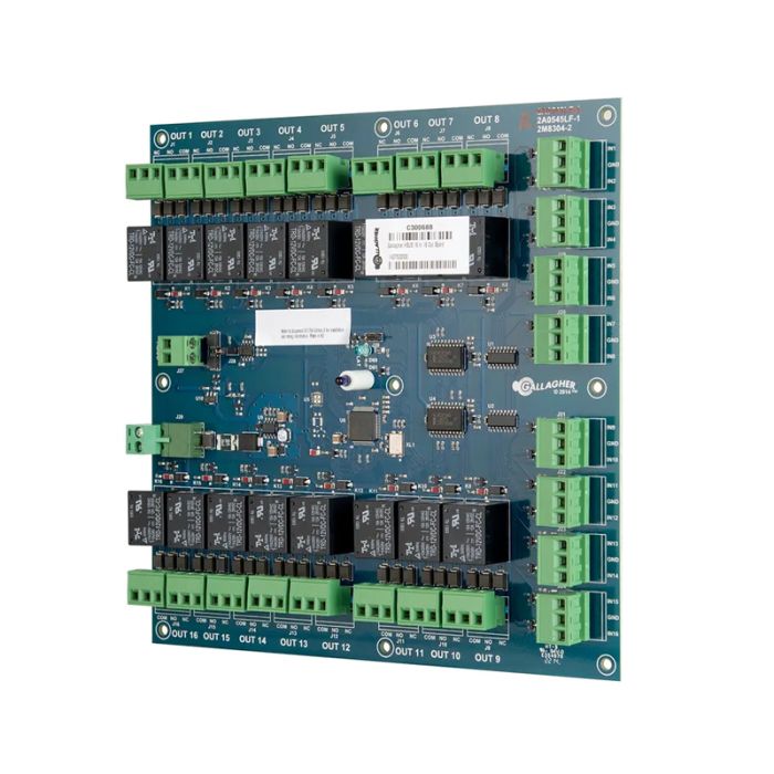The Gallagher HBUS 16 In 16 Out Board extends the existing connectivity of the Gallagher Controller 6000 via the HBUS communications protcol.