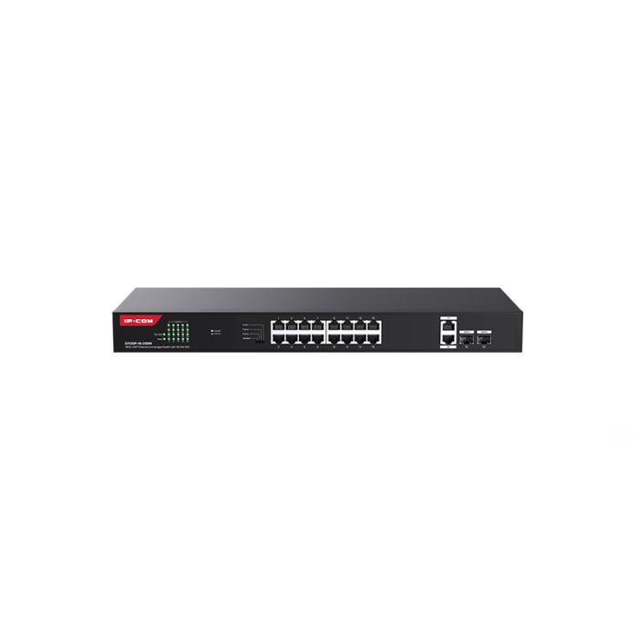 G1120P-16-250W is a gigabit Unmanaged Ethernet PoE switch designed by IP-COM. The switch provides 16 gigabit PoE ports, 2 uplink gigabit RJ45 ports and 2 SFP ports. It supports the IEEE 802.3af/at standard and can automatically detect PDs and supply power. The maximum output power of a single port is 30W, and the power of the whole switch is 250W. It supports rack mounting, one-toggle settings, plug and play, and simple networking. It is an ideal choice for SMBs, hotels, schools, and parks with video surveillance and wireless networking requirements.