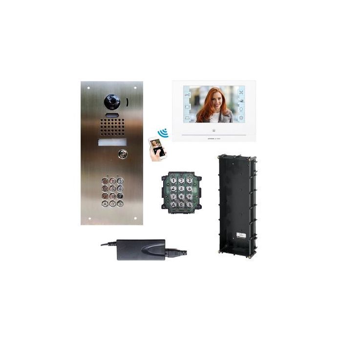 Aiphone 1to1 Colour Wifi Kit with intergarted stanless flush panel and Aiphone Keypad.