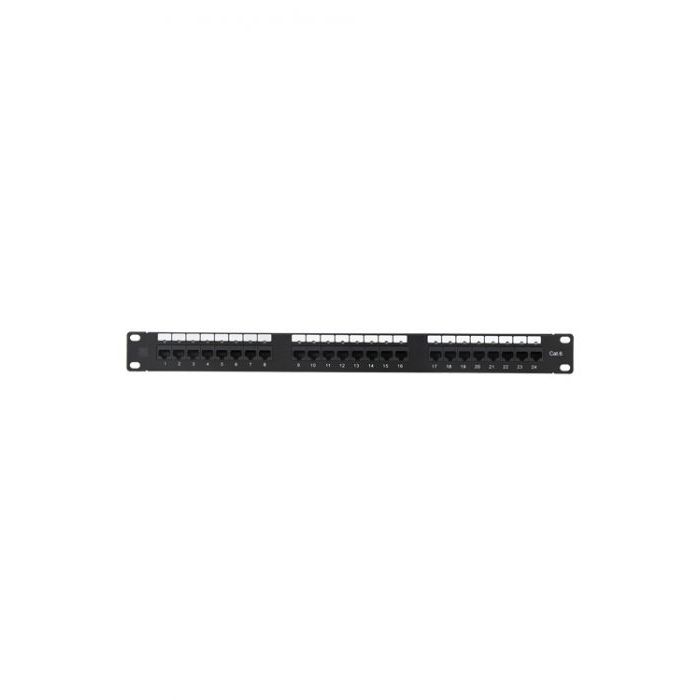 Datamaster Cat6 1RU 24-Port Patch Panel with integrated rear Cable Management loops (Compatible with Cat5e)