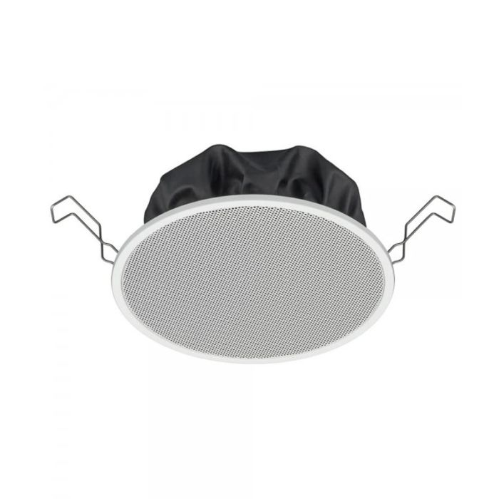 The PC-1860 Ceiling Mount Speaker is of all metallic construction and ideal for use in a voice alarm system or BGM system. It feature spring clamp mechanism for easy mounting to the ceiling. The input impedance can be easily changed by changing the tap position of the transformer. The push-in type input terminal block makes cable connection easy and allow bridge wiring.