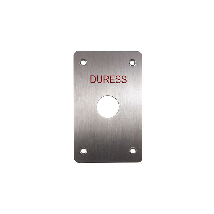 Flat Stainless Plate with curved edges Printed red text - Duress