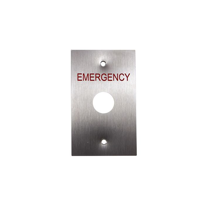 Stainless Flat GPO plate with Emergency Printed Red 22mm Hole