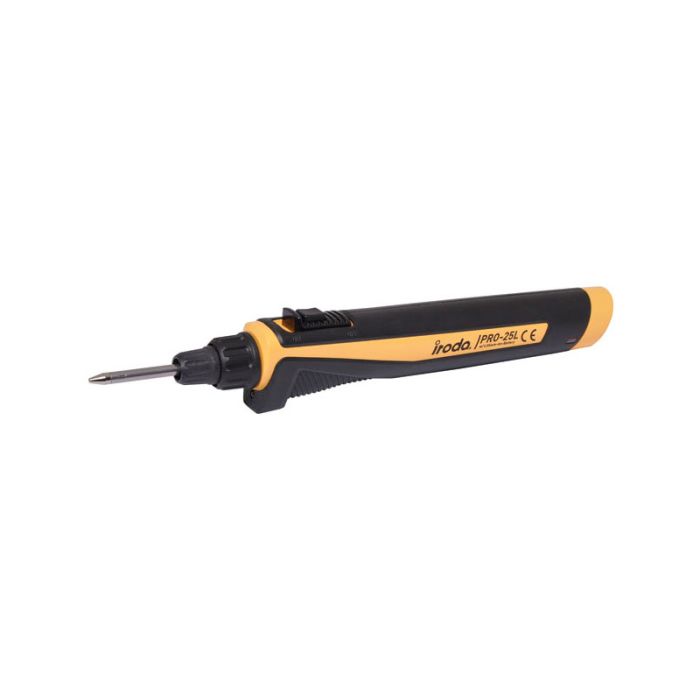 Iroda PRO-25L is a high efficiency multi-function portable soldering iron with a high capacity rechargeable Lithium-Ion-Battery. It features a rubberized ergonomic design and built in stand.