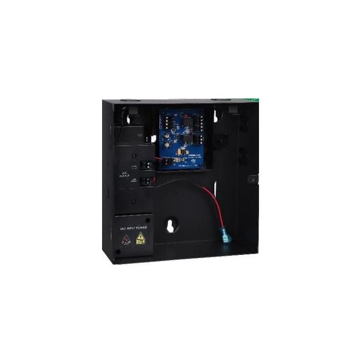 The PS-C25TB has a switch mode power supply with a universal power input range of 100 – 240 VAC, 50/60 Hz, 1.5A AC input, and generates a 15V DC, 4A output to the PM-05 power management module. The PM05 has two independent power channels outputs each with an isolated PTC (self-resetting fuse), with one channel connected to the MD-25TB and the second channel available to power any device of your choice. The MD-25TB isolates the lock from the Controller Unit, securing lock functionality when the Controller Unit is tampered with on the outside of the secure premises. A proprietary two way protocol allows the Controller Unit to activate the Lock/Auxiliary relays and activate the built in speaker (for bell, chime, and siren) in the Secure Module, while the Secure module can also communicate REX input status to the Controller Unit. If the data line between the Controller Unit and the secure module is cut, the system detects the data line has been tampered with and generates a one-minute siren and closes the lock output. Battery backup is available upon AC power failure, the PM-05 module instantaneously (UPS) switches power over to a standby 7AH sealed lead acid battery (not included). The battery charging is managed by the PM-05 with a low battery cut-off preventing batteries from deep discharge.