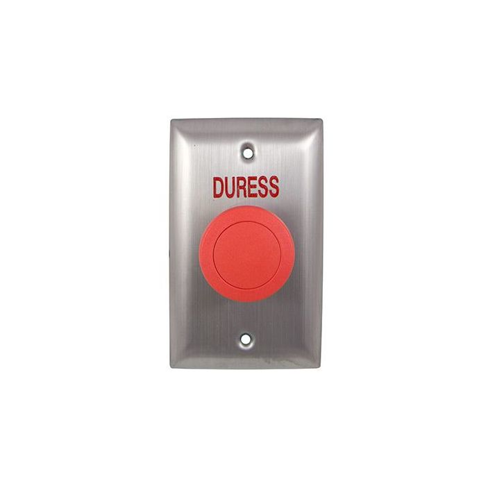 Smart Curved Stainless Steel GPO Plate RED Mushroom Button, Text = DURESS