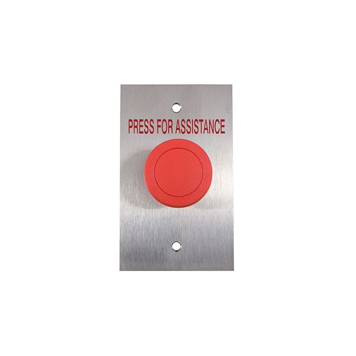 Smart Flat Stainless Steel GPO Plate RED Mushroom Button, Text = PRESS FOR ASSISTANCE