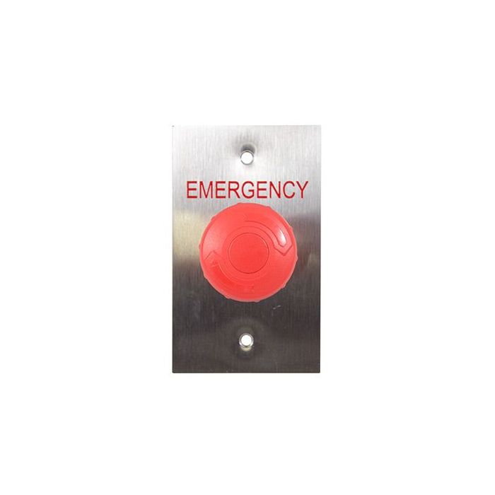 Smart Flat Stainless Steel GPO Plate Red Twist to Release Button, Text = EMERGENCY