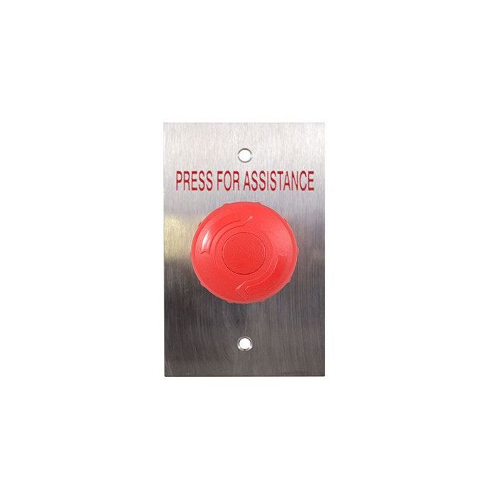 Smart Flat Stainless Steel GPO Plate Red Twist to Release Button, Text = PRESS FOR ASSISTANCE