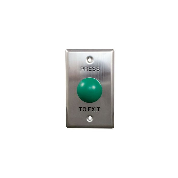 Green 22 mm diameter Mushroom Dome Button & Stainless Steel switch plate with press to exit engraved