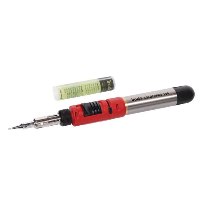The Solderpro 150 is a professional grade automatic ignition, soldering iron/torch multi-function heat tool. Powered by a removable/refillable Liquid Energy Cell (L.E.C.) the T 2630 boasts an equivalent power range of 30-125 Watts as an iron, and as a torch produces a 1300ºC flame.